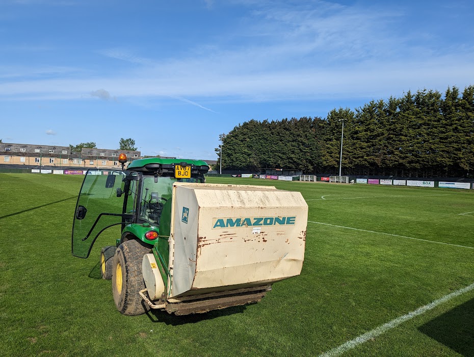 Pitch cutting in progress - also a few volunteers have been repainting the inner grey fence as well to protect it, along with other repairs. Work in progress.
